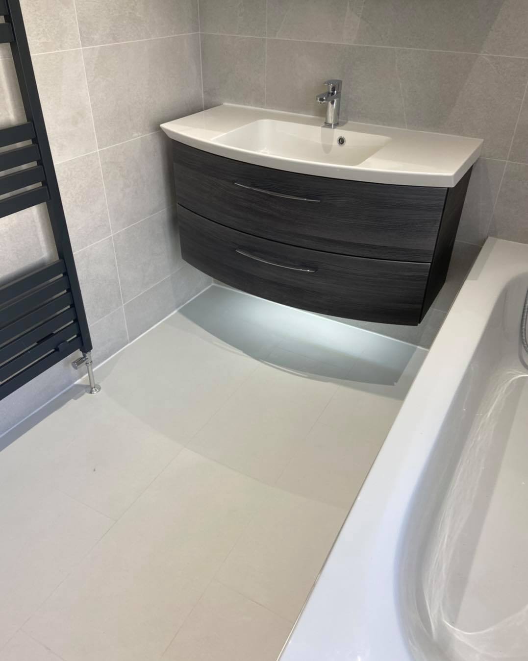 Ashley did a superb job transforming our bathroom. Tired black panelling removed, sink moved, bath and large mirror installed, and the entire room retiled on both walls and floor. The finish is great, workmanship is incredible, and Ashley was thoroughly professional, keeping us updated throughout. The whole experience was a breeze and we are delighted with the results. Will be recommending to anyone needing a bathroom transformed.